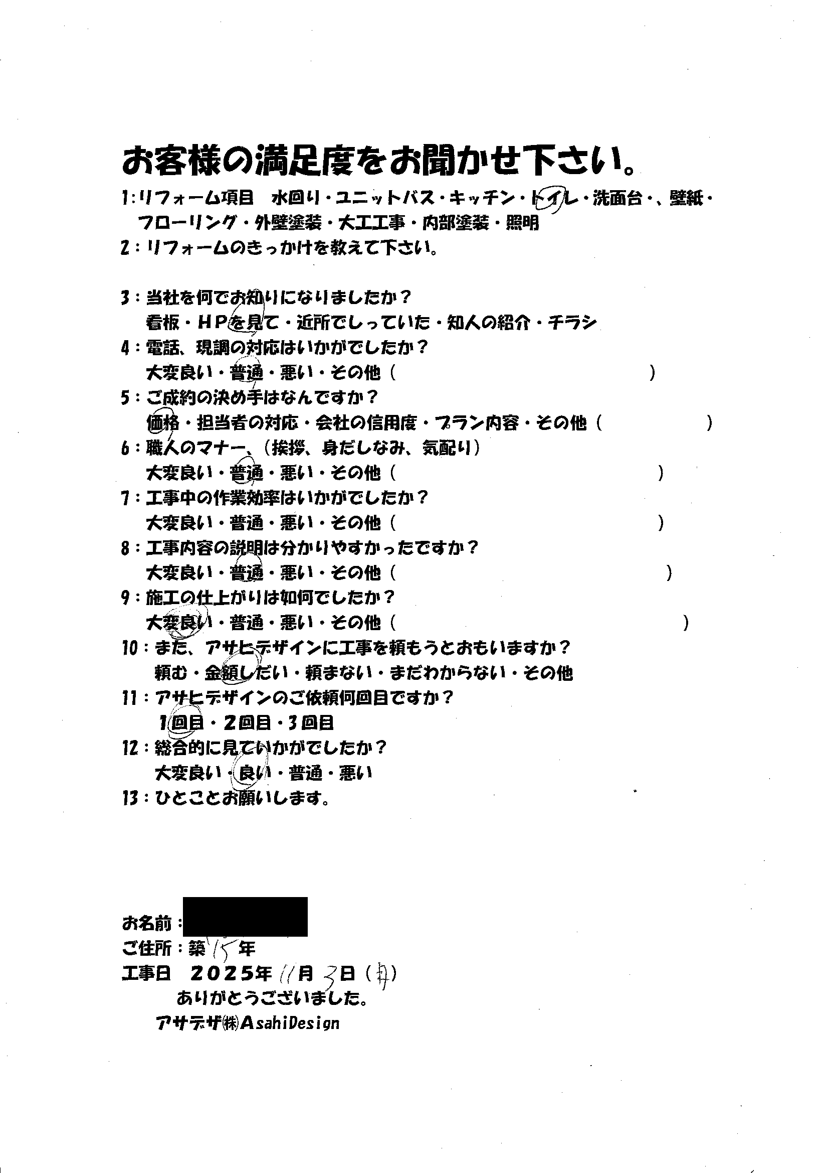 | またアサデザ(アサヒデザイン)に工事を頼もうと思いますか? | 金額次第 |