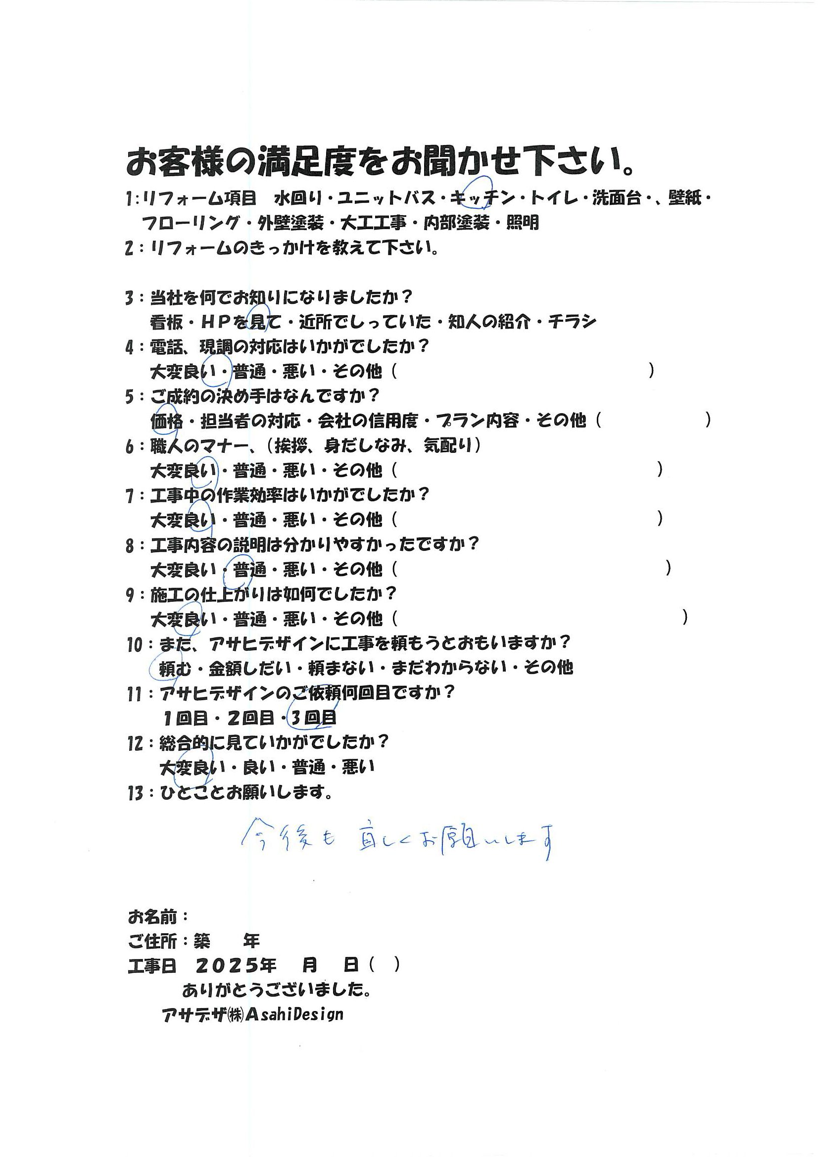 | ひとことください | 今後もよろしくお願いします |