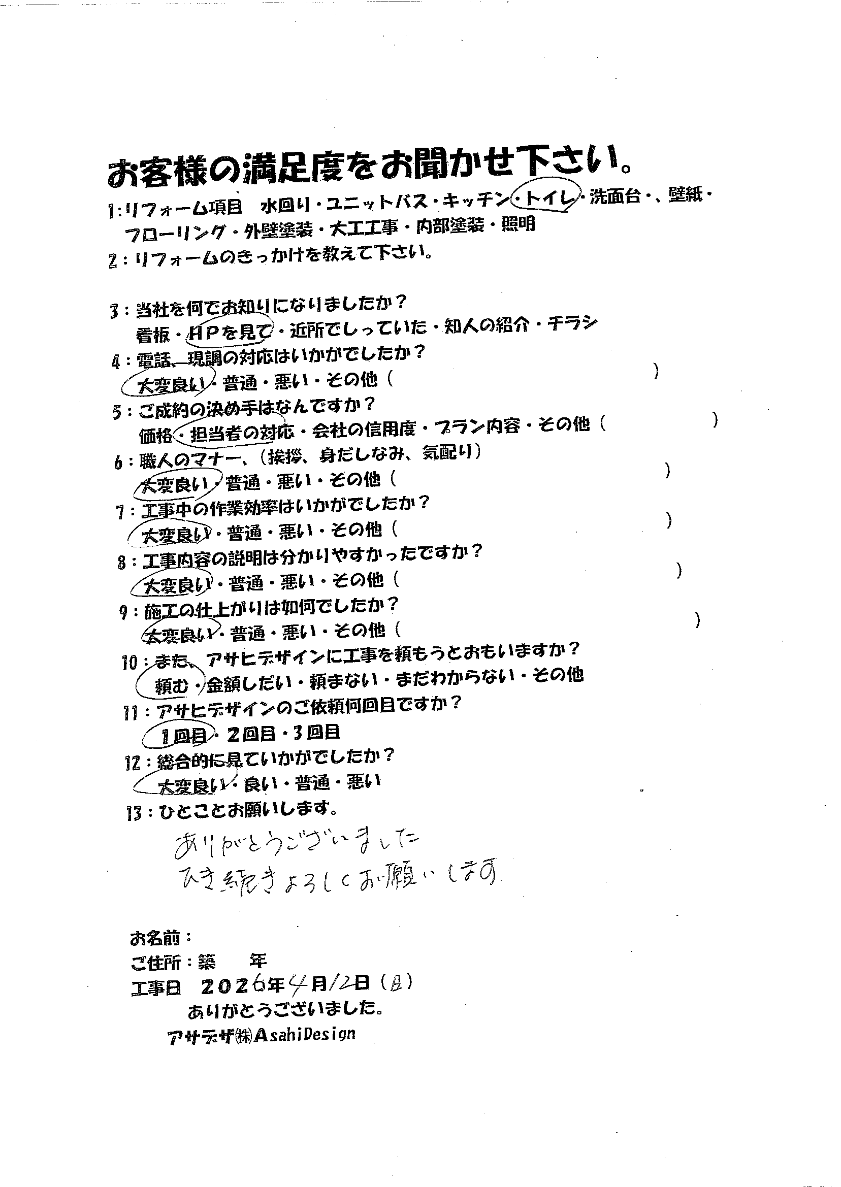 | またアサデザ(アサヒデザイン)に工事を頼もうと思いますか? | 頼む |