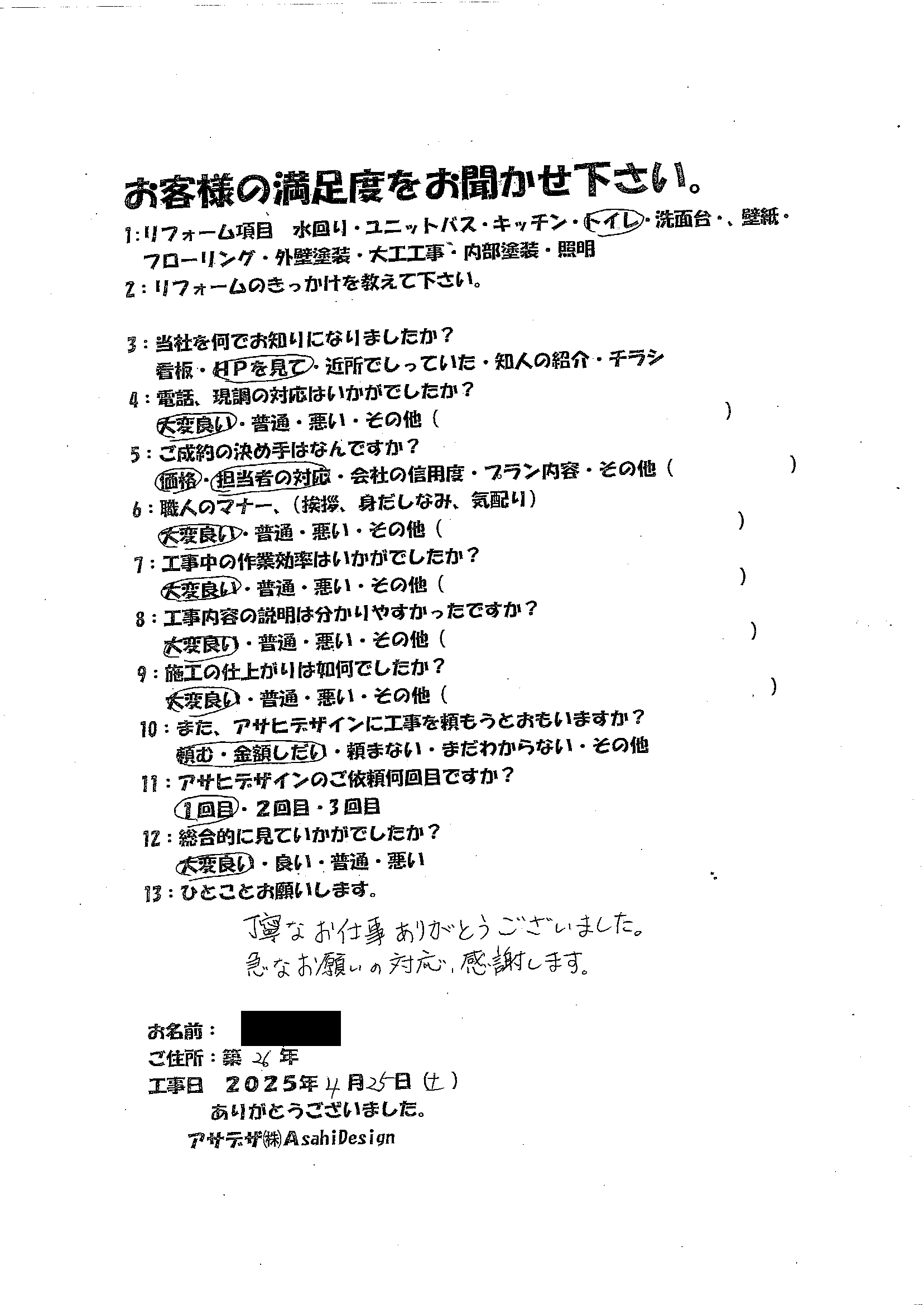 | またアサデザ(アサヒデザイン)に工事を頼もうと思いますか? | 頼む / 金額次第 |